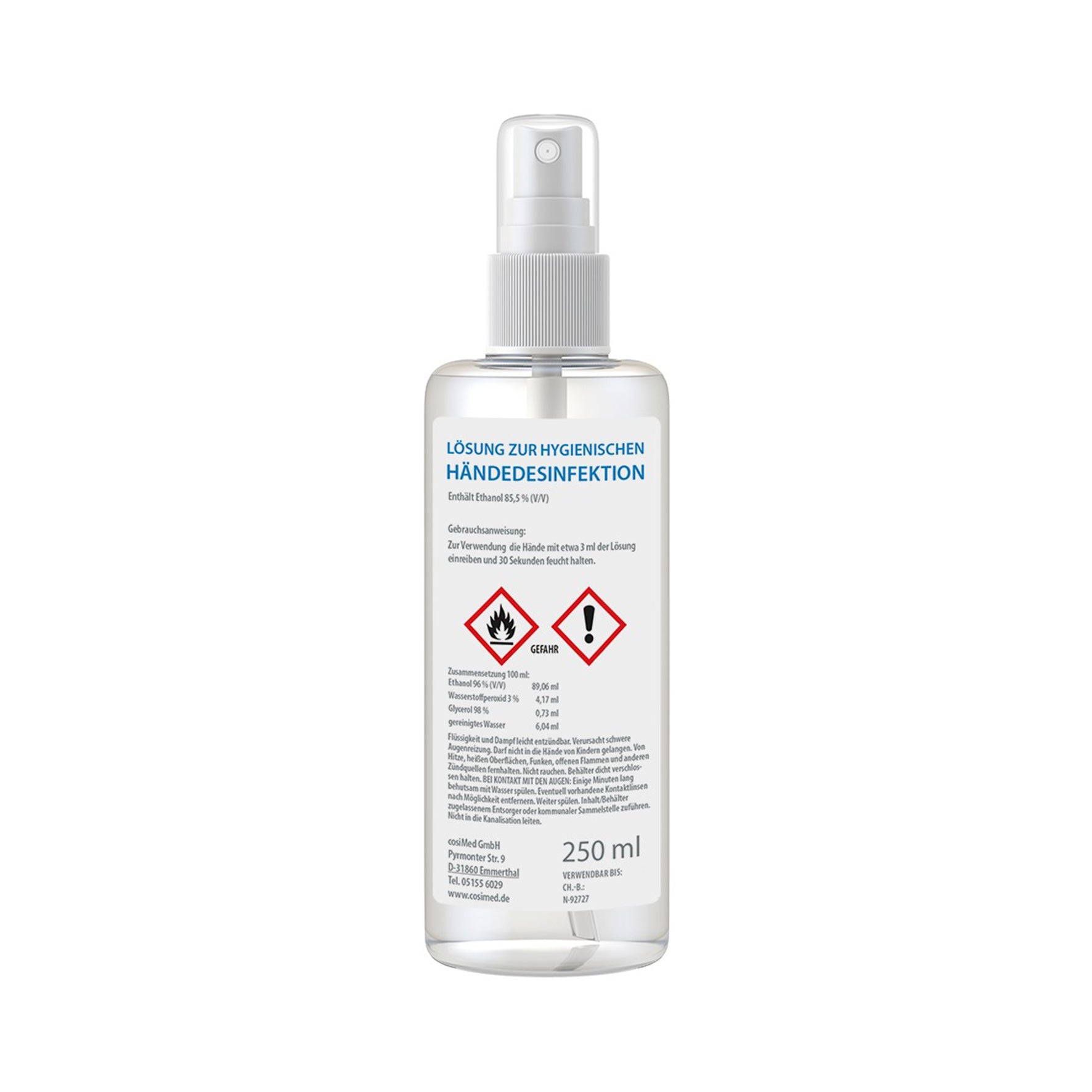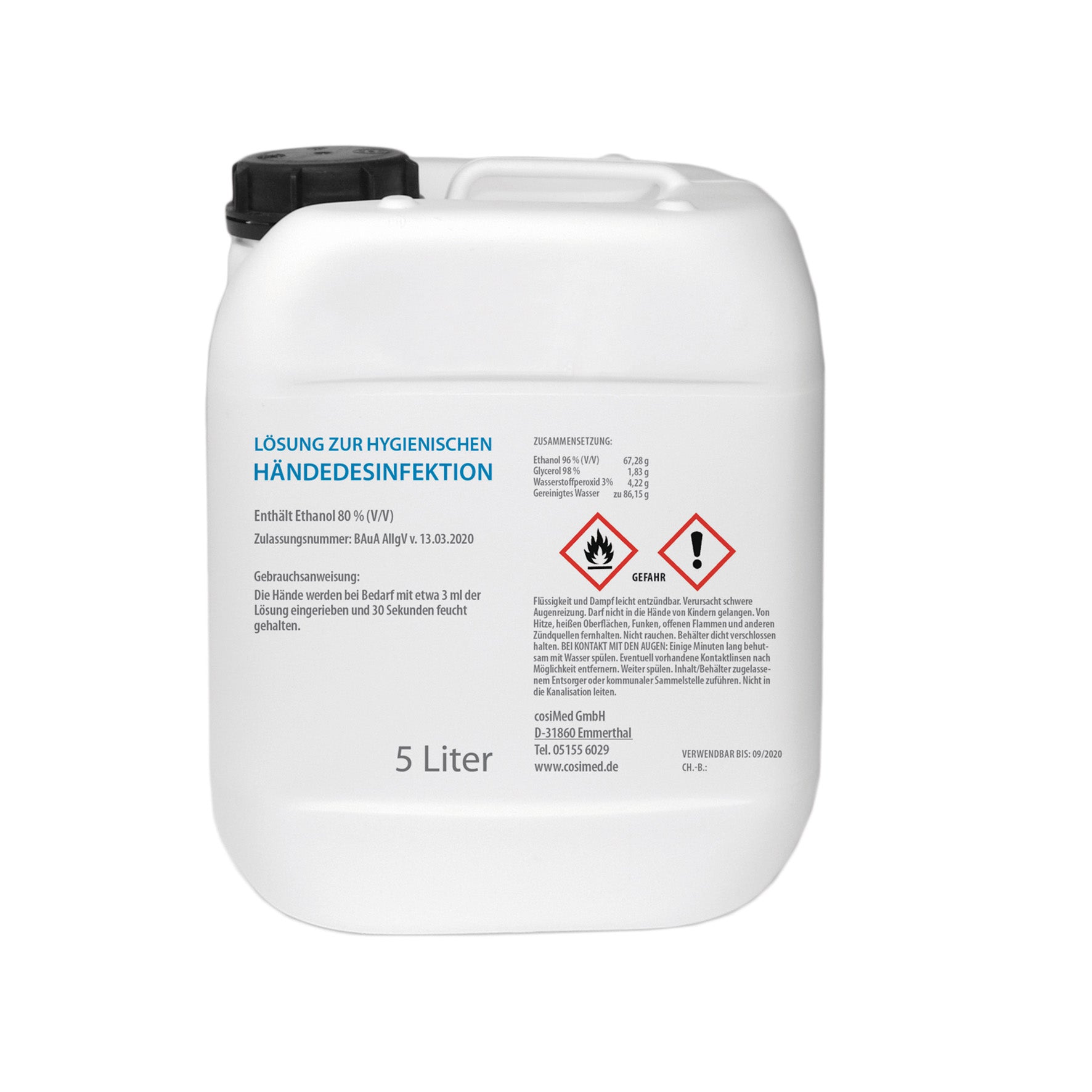 Die cosiMed Lösung zur hygienischen Händedesinfektion ist ein hochwirksames Desinfektionsmittel mit 85,5 % Ethanol zur zuverlässigen Bekämpfung von Bakterien, Pilzen und behüllten Viren. Sie eignet sich ideal für den Einsatz im medizinischen Bereich, in öffentlichen Einrichtungen, im Büro oder zu Hause.
