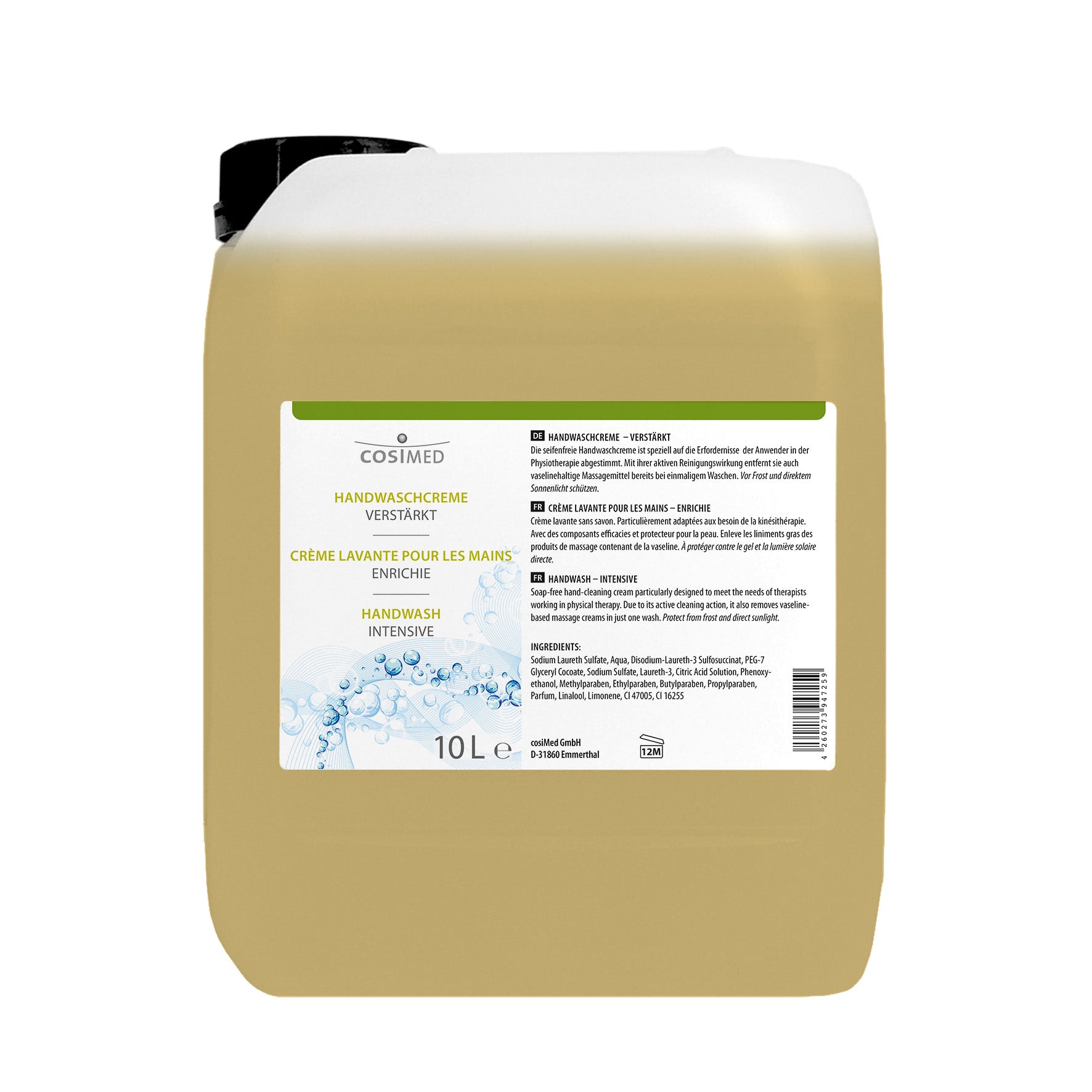 Die cosiMed Handwaschcreme verstärkt wurde für die zuverlässige Reinigung stark beanspruchter Hände entwickelt. Ihre seifenfreie, pH-hautneutrale Formulierung entfernt selbst Rückstände öl- und vaselinehaltiger Massagemittel oder Massageöle bereits beim einmaligen Waschvorgang. Dabei bleibt die Haut spürbar gepflegt und wird nicht gereizt. Der dezente Duft rundet das angenehme Reinigungserlebnis ab. Ideal für den täglichen Einsatz in Physiotherapie, Massagepraxis, Studio oder Werkstatt – überall dort, wo Hände häufig mit pflegenden oder öligen Produkten in Kontakt kommen.