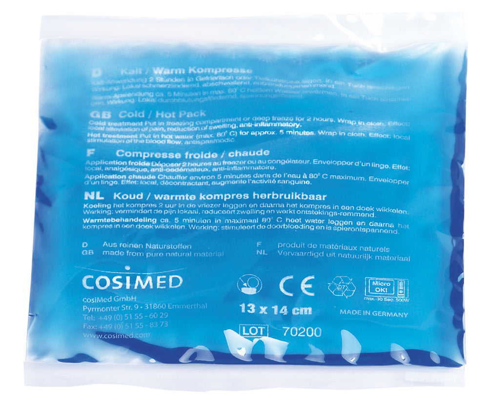 Die Kalt-/Warm Kompresse ist ein vielseitiges Hilfsmittel zur gezielten Temperaturtherapie. Mit ihrer Größe von 12 x 29 cm eignet sie sich ideal für die Anwendung an Rücken, Bauch, Oberschenkeln oder anderen größeren Körperpartien. Je nach Bedarf kann die Kompresse im Kühlschrank oder Gefrierfach gekühlt oder in warmem Wasser bzw. der Mikrowelle erwärmt werden.