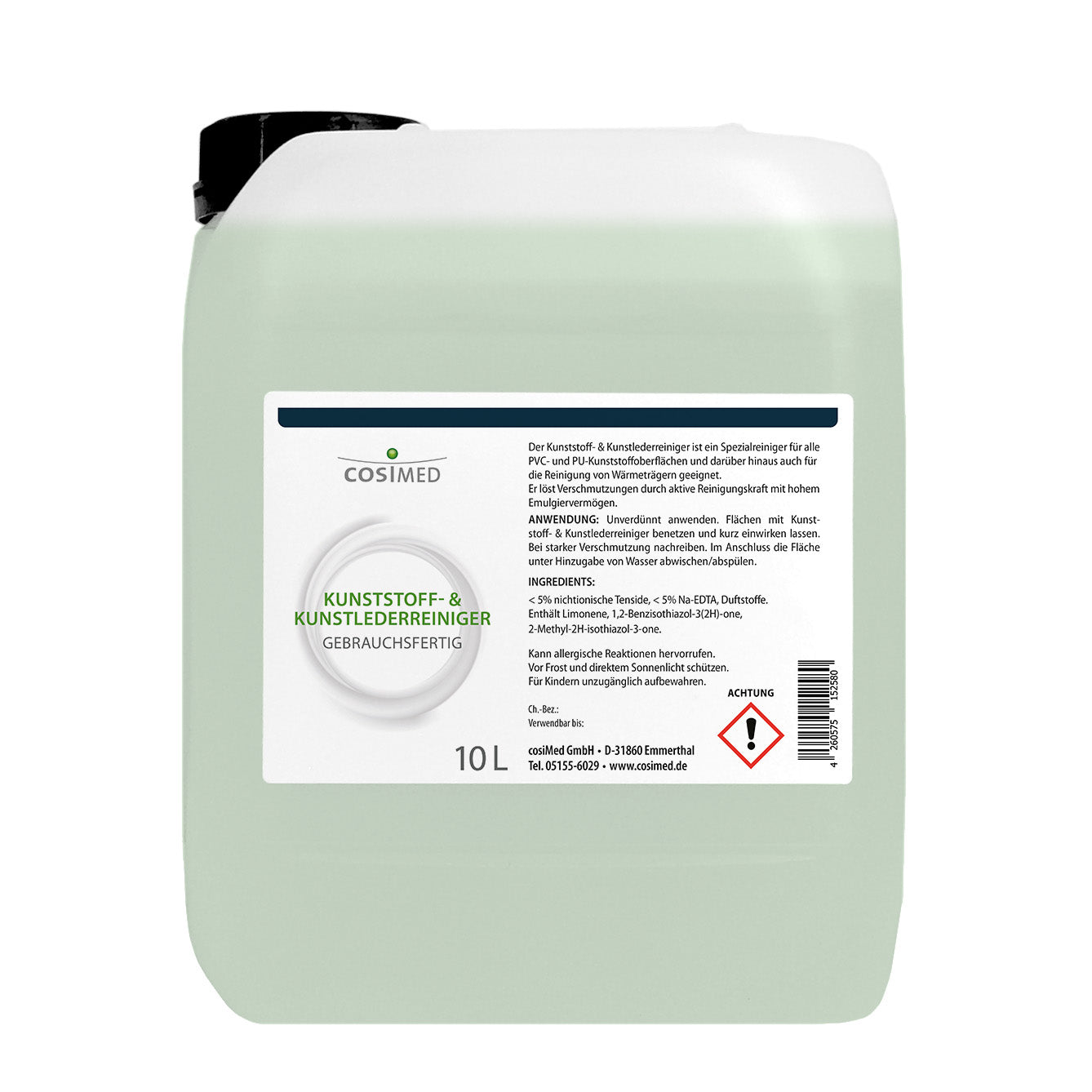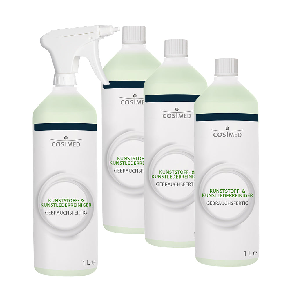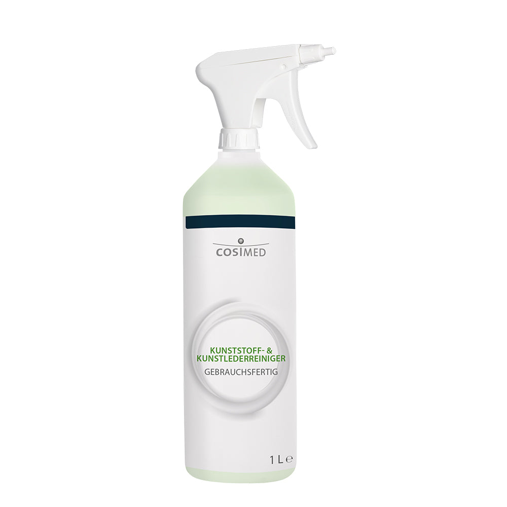 Der cosiMed Kunststoff- & Kunstlederreiniger ist ein professioneller Spezialreiniger für alle PVC- und PU-Kunststoffoberflächen – ideal für Kunstlederbezüge, Therapieliegen, Wärmeträger und mehr. Die alkoholfreie Rezeptur mit hoher Emulgierkraft entfernt zuverlässig Schmutz, ohne das Material zu beschädigen.