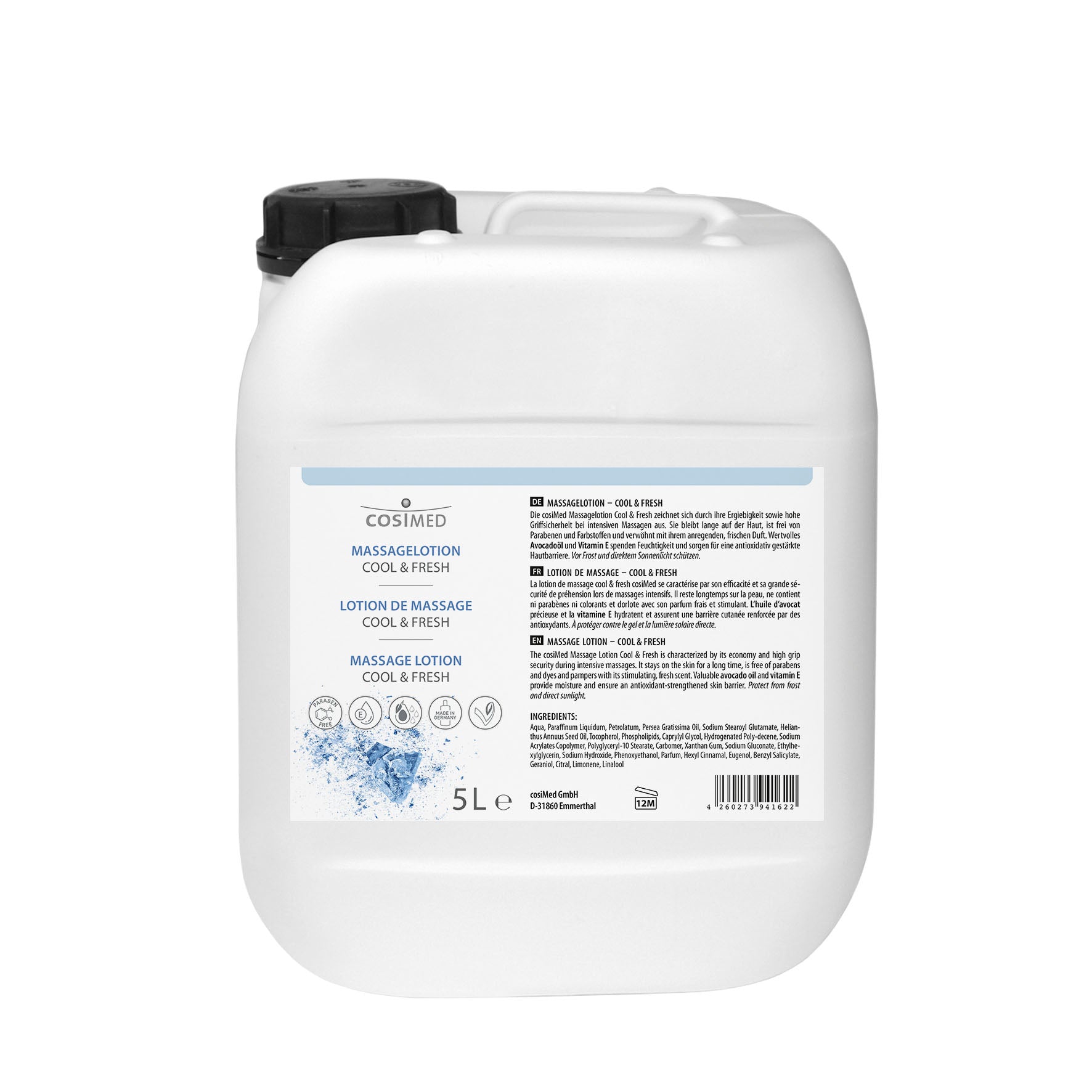 Die cosiMed Massagelotion Cool & Fresh bietet ein besonders angenehmes Massageerlebnis und pflegt die Haut mit wertvollem Avocadoöl und Vitamin E. Sie lässt sich leicht verteilen, besitzt eine hervorragende Gleitfähigkeit und unterstützt eine gleichmäßige, angenehme Massage.
