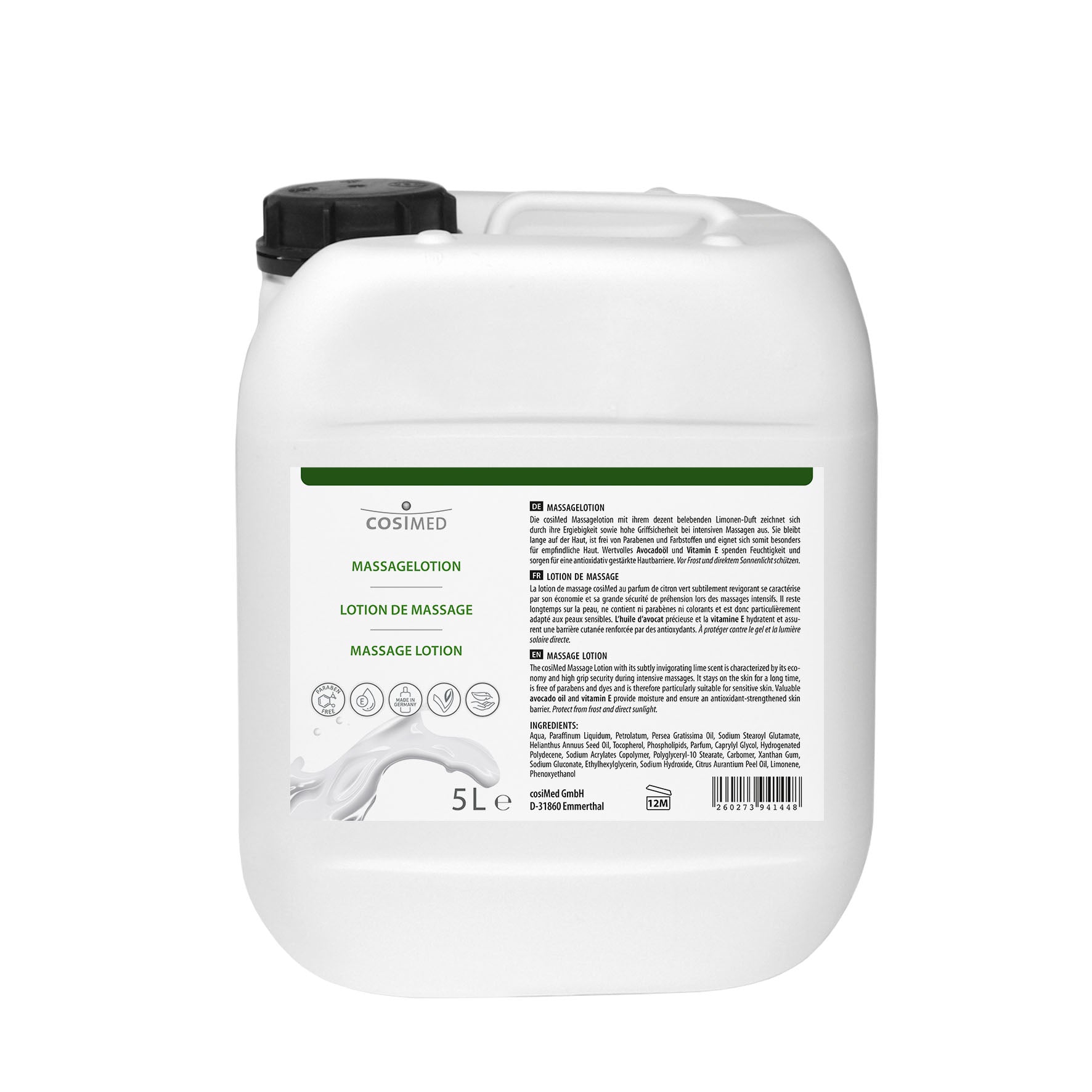 Die cosiMed Massagelotion mit leichtem Limonenduft bietet ein besonders angenehmes Massageerlebnis und pflegt die Haut mit wertvollem Avocadoöl und Vitamin E. Sie lässt sich leicht verteilen, besitzt eine hervorragende Gleitfähigkeit und unterstützt eine gleichmäßige, angenehme Massage.