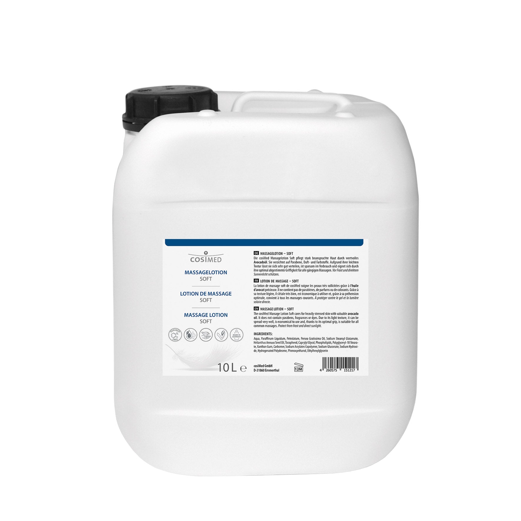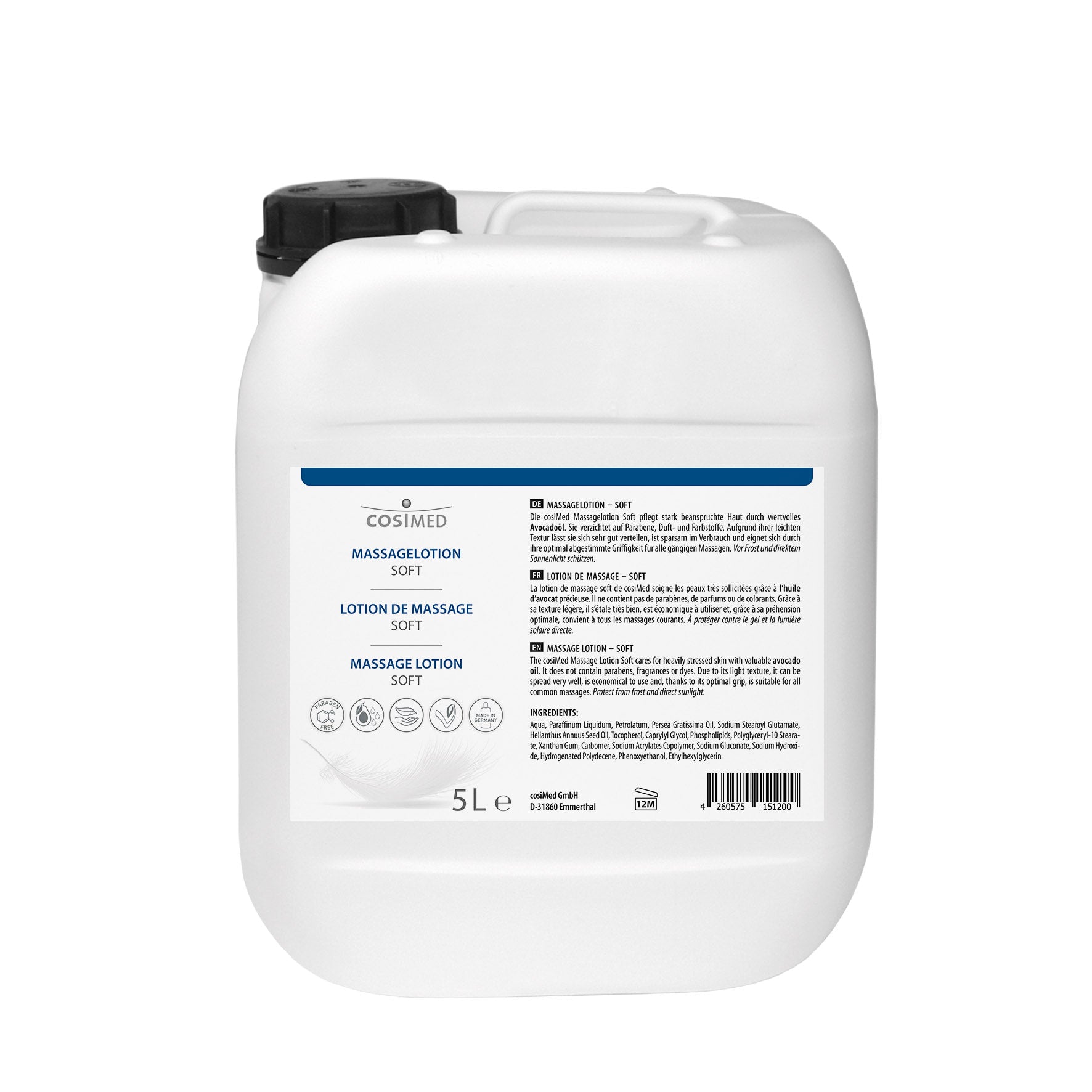 Die cosiMed Massagelotion Soft bietet ein besonders angenehmes Massageerlebnis und pflegt die Haut mit wertvollem Avocadoöl und Vitamin E. Sie lässt sich leicht verteilen, besitzt eine hervorragende Gleitfähigkeit und unterstützt eine gleichmäßige, angenehme Massage.
