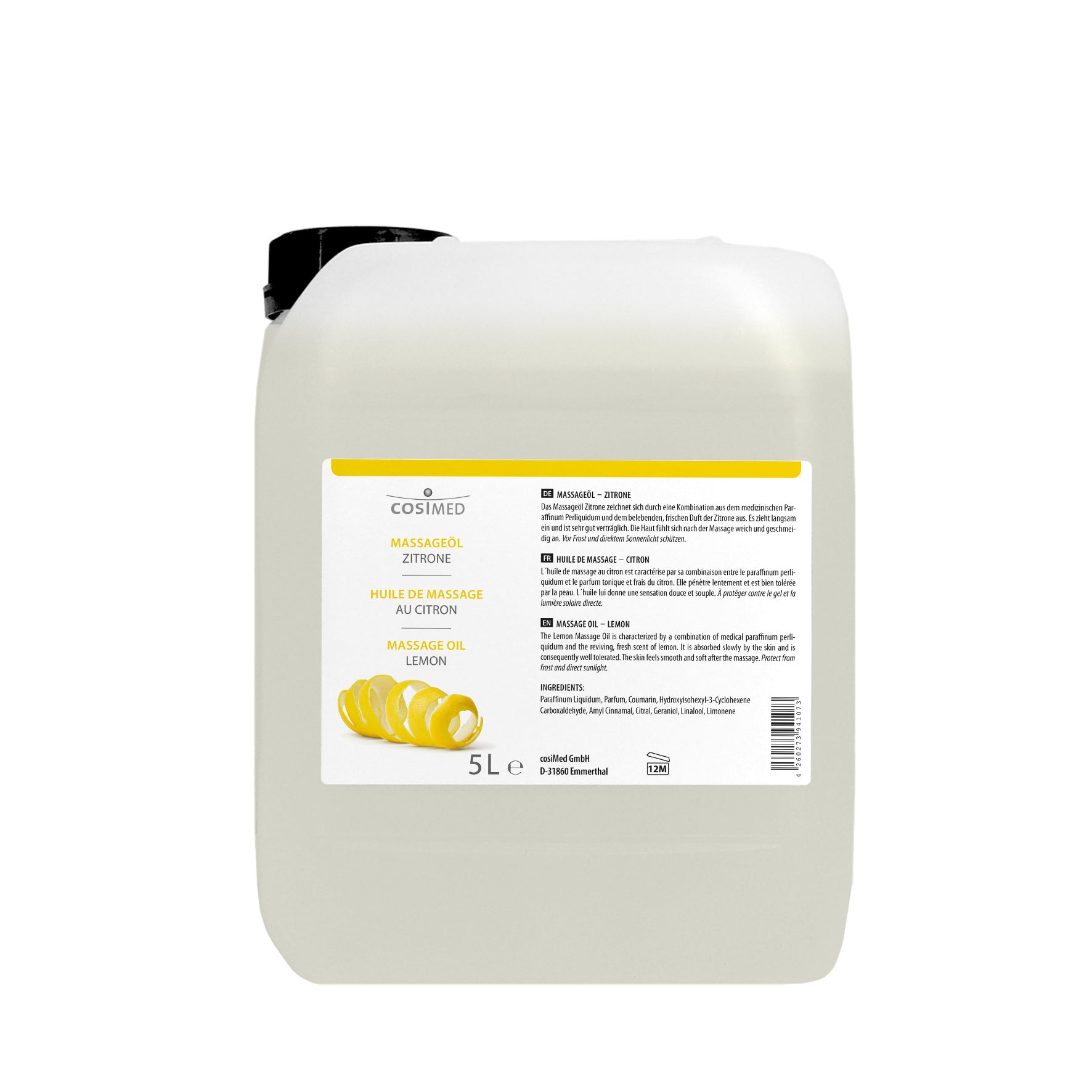 Das cosiMed Massageöl Zitrone vereint Massageöl in Top-Qualität mit dem frischen, belebenden Duft sonnengereifter Zitronen und macht jede Massage zu einem besonderen Pflegeerlebnis.
