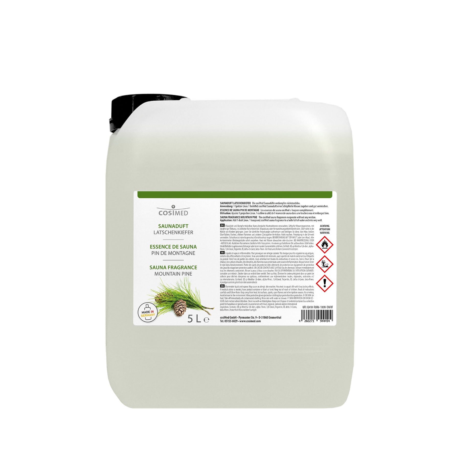 Der cosiMed Saunaduft Latschenkiefer bringt die frische Klarheit der Berge direkt in Ihre Sauna. Sein würzig-aromatischer Duft verleiht dem Saunagang eine natürliche, belebende Note – ideal für alle, die den Kopf frei bekommen und neue Kraft schöpfen möchten.