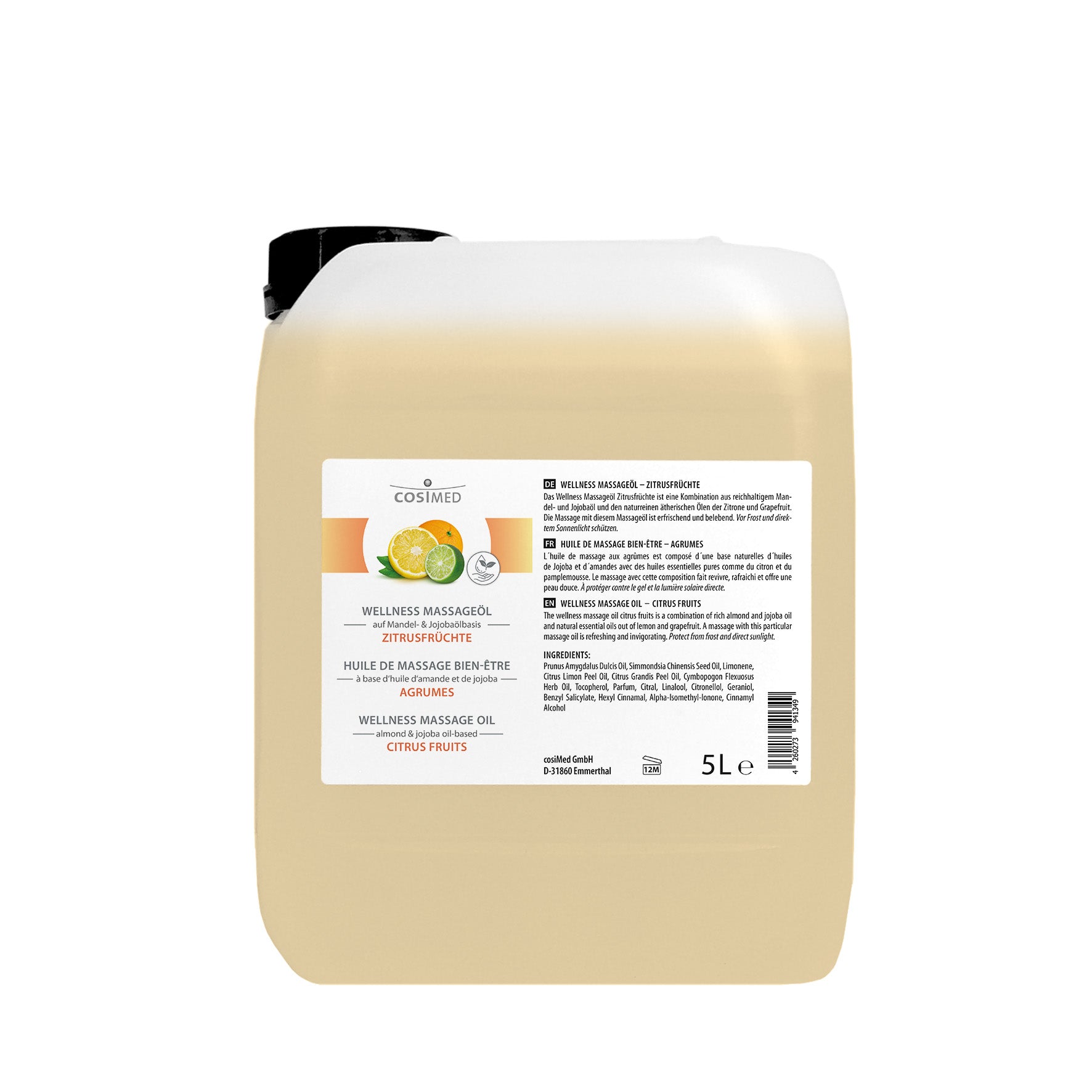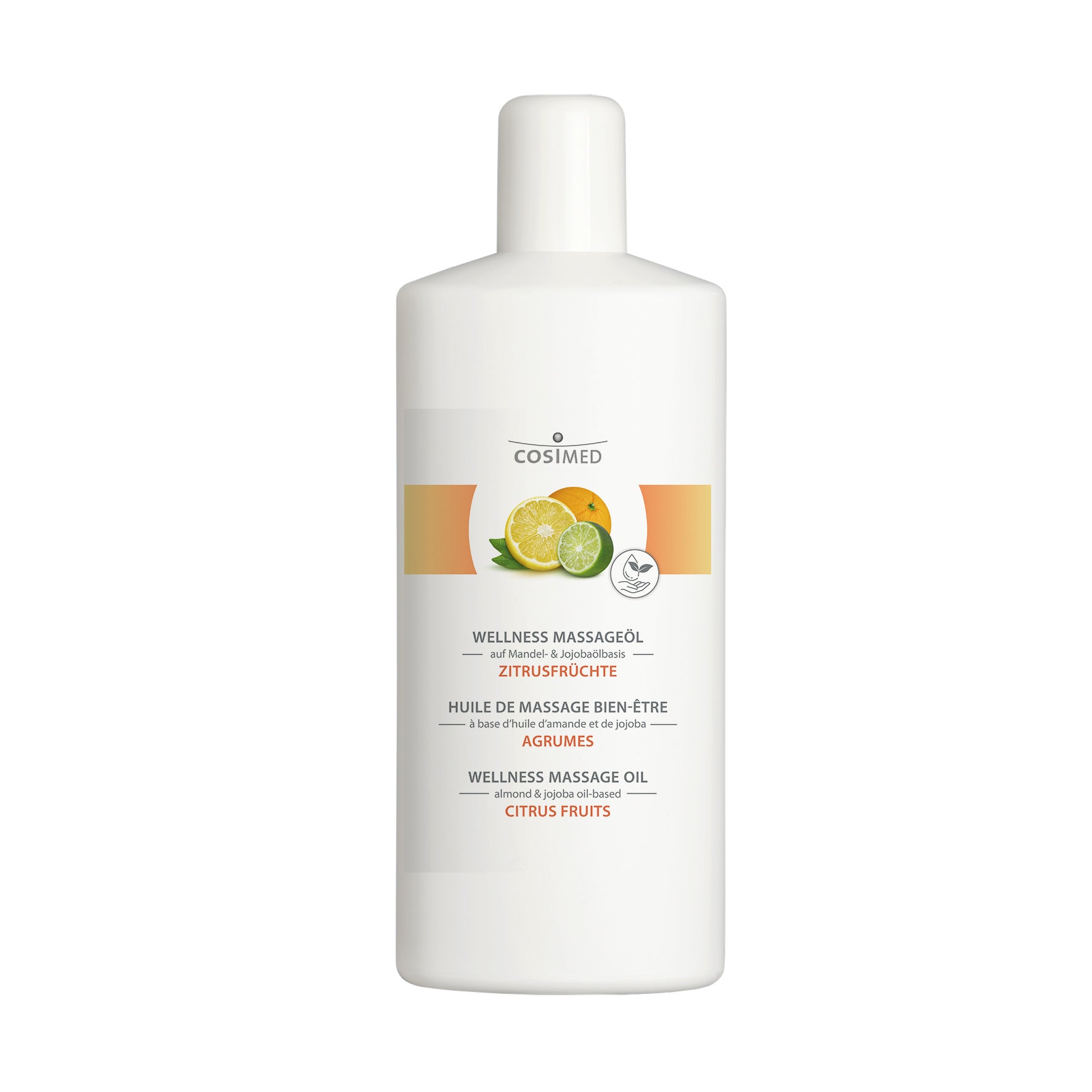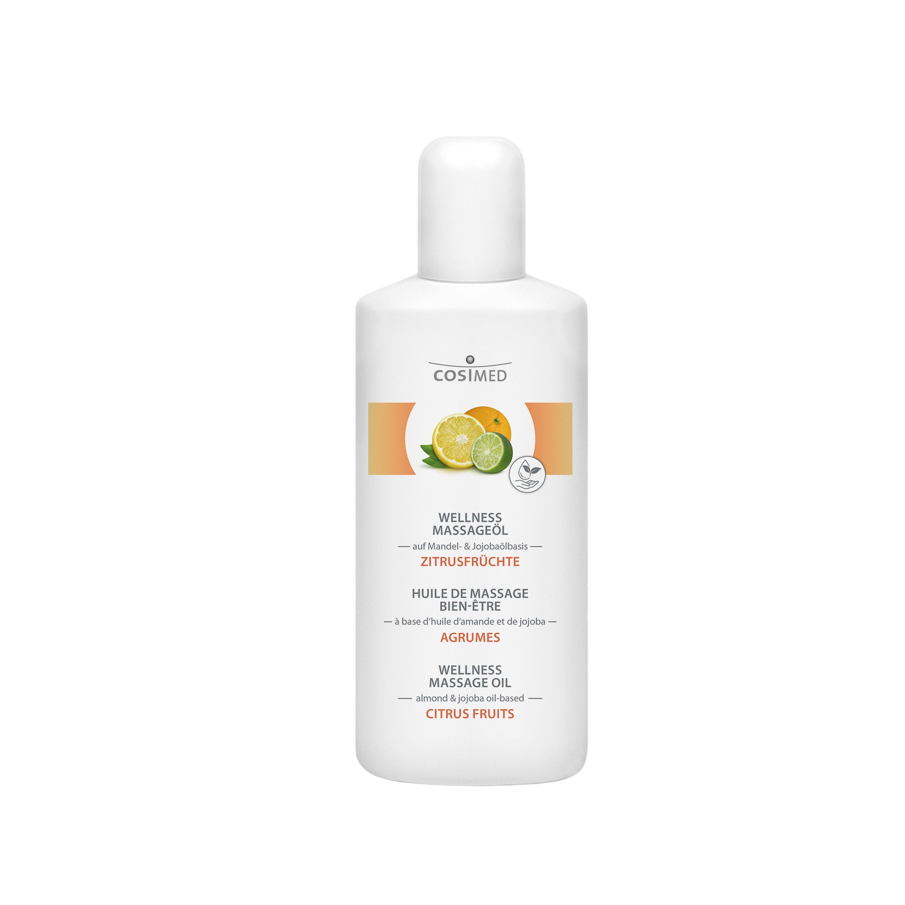 Das cosiMed Wellness Massageöl Zitrusfrüchte vereint pflegendes Mandel- und Jojobaöl mit den ätherischen Ölen von Zitrone und Grapefruit zu einer harmonischen Komposition. Der frische, fruchtig-süße Duft der Zitrusfrüchte verleiht jeder Massage eine lebendige, leichte Note und sorgt für ein wohltuendes Pflegeerlebnis.